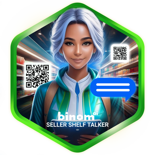 AI Shelf Talker рекламирует и продает ваши продукты в магазине; клиенты сканируют QR-код на упаковке и получают совет от вашего эксперта Binom перед покупкой.